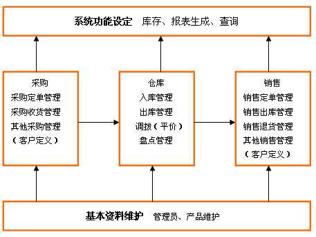 功能模塊簡介 1. 系統功能設定模塊 自定義整個系統的管理規則,包括定義管理員及其操作口令的功能; 2. 基本資料維護模塊 對每批產品生成唯一的基本條碼序列號標簽,用戶可以根據自己的需要定義序列號,每種型號的產品都有固定的編碼規則,在數據庫中可以對產品進行添加、刪除和編輯等操作; 3. 采購管理模塊 采購定單:當需要采購的時候,可以填寫采購定單,此時并不影響庫存; 采購收貨:當采購定單被批準,完成采購后到貨的時候,首先給貨物帖上條形碼序列號標簽,然后在采購收貨單上掃描此條形碼,保存之后,庫存自動增加。 其他入庫:包括借出貨物歸還、退貨等只需要填寫采購收貨單; 4. 倉庫管理模塊 產品入庫:采購入庫或者其他入庫,自動生成入庫單號,貨品及可選擇方便快捷,可以區分正常入庫、退貨入庫等不同的入庫方式。 產品出庫:銷售出庫或者其他出庫,可以自動生成出庫單號,可以區分正常出庫、贈品出庫等不同的出庫方式; 庫存管理:不需要手工管理,當入庫和出庫時,系統自動生成每類產品的庫存數量,查詢方便; 特殊品庫:當客戶需要區分產品時,可以建立虛擬的倉庫管理需要區分的產品,各功能和正常品庫一致。 調撥管理:針對不同的庫之間需要調撥,可以自動生成調撥單號,支持貨品在不同的倉庫中任意調撥。 盤點管理:用戶隨時可以盤點倉庫,自動生成盤點單據,使盤點工作方便快捷。 庫存上限報警:當庫存數量不滿足一個量的時候,系統報警。 5. 銷售管理模塊 銷售定單:當銷售出庫的時候,首先填寫銷售出庫單,此時不影響庫存; 銷售定單:當銷售出庫的時候,將銷售出庫產品序列號掃描至該出庫單上,保存之后,庫存報表自動減少該類產品。 6. 報表生成模塊 月末,季度末以及年末銷售報表、采購報表以及盤點報表的自動生成功能,用戶自定義需要統計的報表; 7. 查詢功能 采購單查詢,銷售單查詢,單個產品查詢,庫存查詢等(用戶定義)。 查詢都是按照某個條件:條形碼序列號、出庫日期、出庫客戶等來查詢。